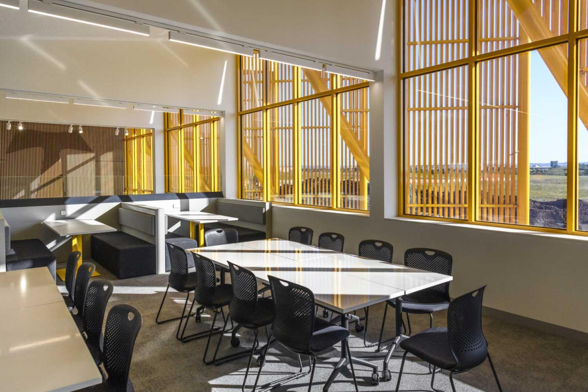 A key design feature of the new College is a landscaped cloister that forms the heart of the school. Surrounded by buildings and pathways, the area provides shelter from the elements and a place for students and staff to meet, talk, learn and gather.