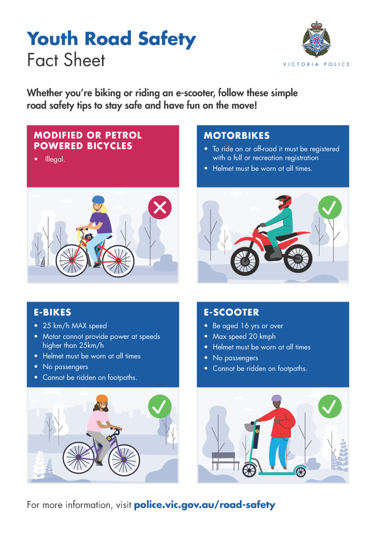 Below are some important reminders about road safety when using e-bikes and e-scooters.