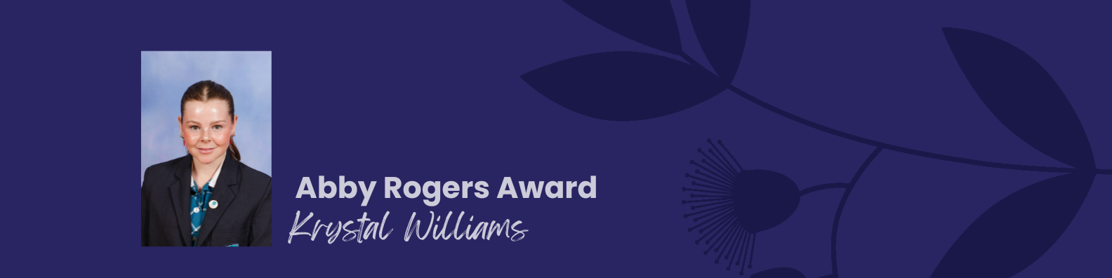 This award honours the memory of Abby Rogers, a former student who tragically passed away. Abby was known for her personable and gentle nature, which endeared her to all. The 2025 recipient is Krystal Williams.