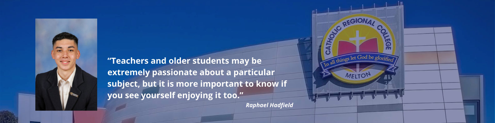 As he begins his final semester at the College and VCE exams loom, Raphael said the best advice he could give Year 9 students would be to pursue the subjects they enjoy the most.