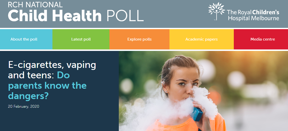 A Royal Children’s Hospital Child Health Poll shows half of parents surveyed support a total ban on the supply, sale and use of all e-cigarettes and vaping products in Australia.