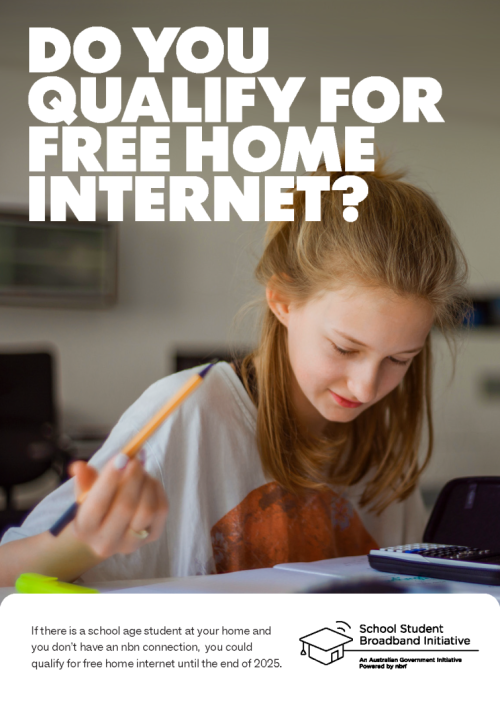 To be eligible, a family must have a child enrolled in an Australian school living in the home, have no active broadband service over the nbn network, and be able to access a standard nbn service at the residence.