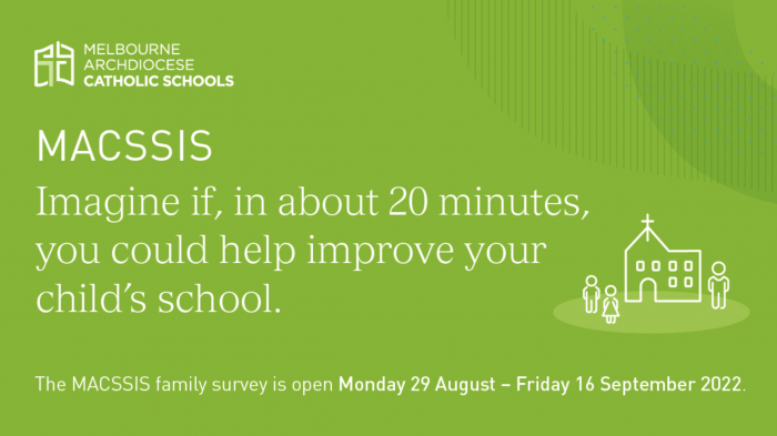 In 2022, our school is participating in Melbourne Archdiocese Catholic Schools – School Improvement Surveys (MACSSIS). MACSSIS is an annual process whereby schools listen to the thoughts and feelings students, families and staff have about how their school can improve. These surveys help inform the ongoing improvement of schools across the Archdiocese of Melbourne.