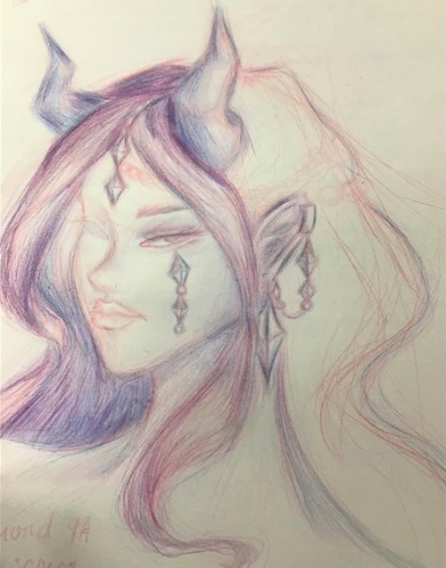 “In art, our first task was to create a front cover that best represented us as a person. I used pink, blue and purple pencils, layering them accordingly to create different shades and tones.”