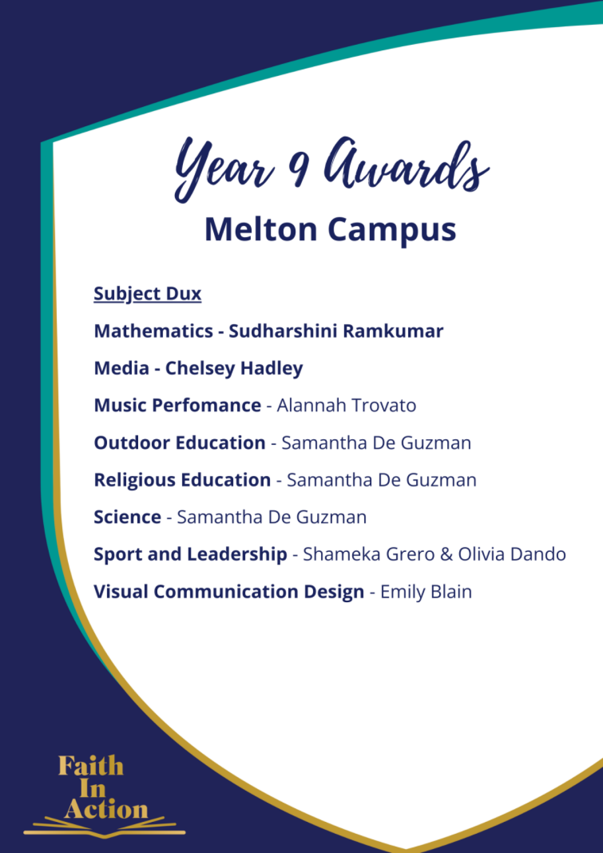 Last Thursday we celebrated the inaugural Cobblebank Campus Junior Awards Ceremony followed by our Melton Campus Junior Awards Ceremony on Friday.