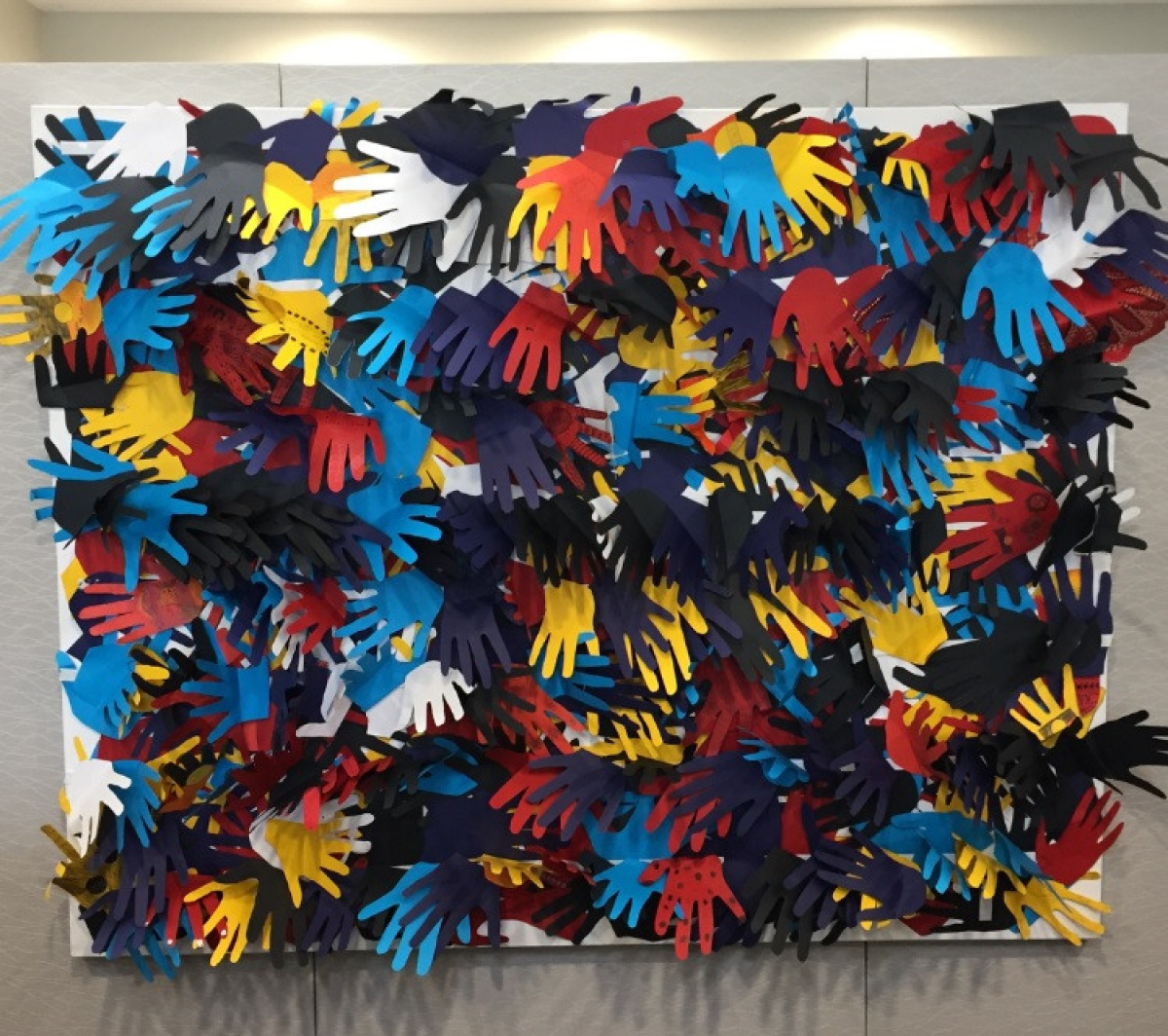 Earlier in the term, CRC Melton celebrated NAIDOC week where students were encouraged to learn more about Aboriginal and Torres Strait Islander history and culture. Students from each year level cut a copy of their hand out in a colour that represented either the Aboriginal or Torres Strait Islander flag. For example, Year 7 students hands are all represented by yellow, Year 8 red, Year 9 black, Year 10 blue, Year 11 royal blue and Year 12 white. We collected approximately 700 hands and collated them into the artwork displayed. This representation of student work is now proudly displayed in the foyer of our school.